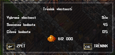 Trénink atributů lze koupit kliknutím na šipku nahoru vedle atributu.