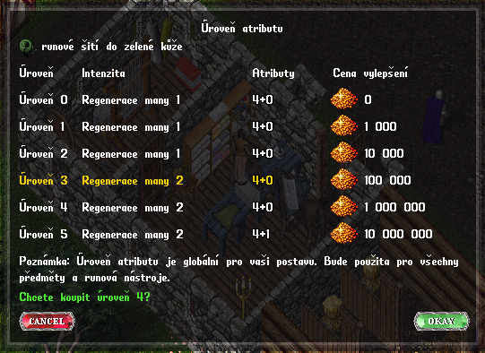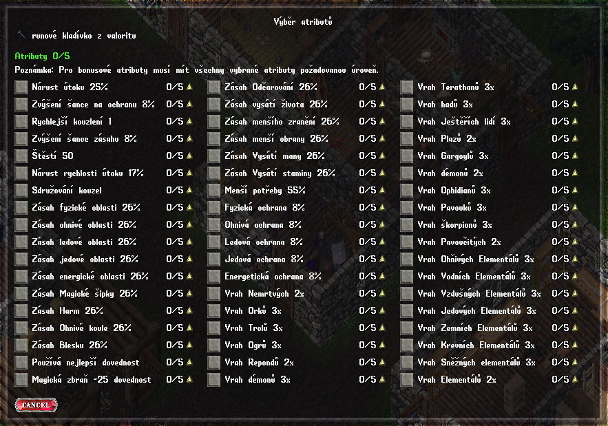 Když kupuješ na trhu předměty vyrobené runovým nástrojem, můžeš si zvolit atributy.